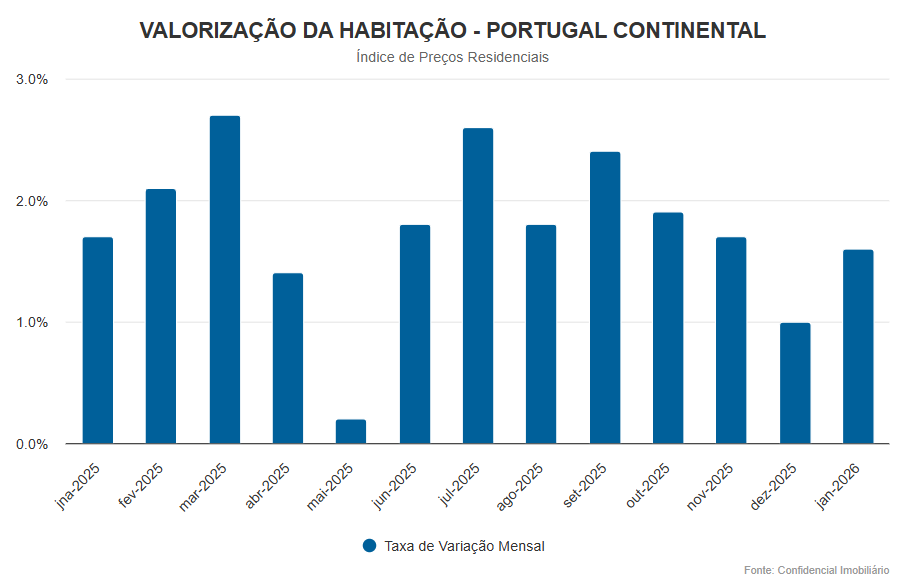 Os preços de venda da habitação em Portugal Continental registaram um aumento mensal de 1,6% em janeiro deste ano.